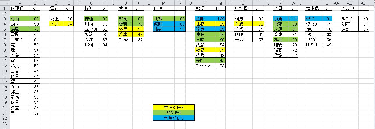とりあえずE-5掘りに使った編成と装備