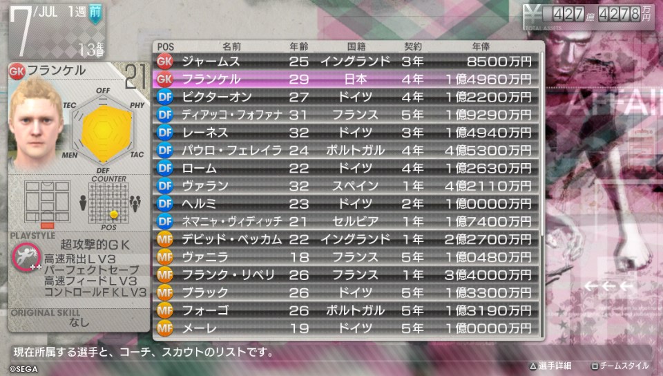 7シーズン目はフォーゴ(フィーゴ)が転生して他クラブにいたので所持金120億くらいと、全然無いのに完全移籍交渉開始。