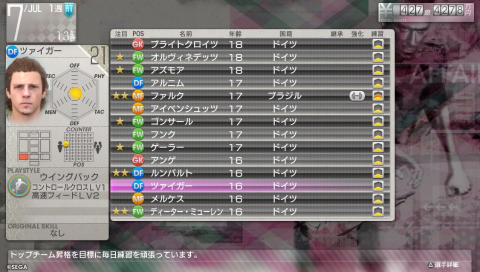 8シーズン目のキャンプ直前に他クラブを見てて気づいた転生選手(もしかしたら7シーズン目で転生してたのかも?)。