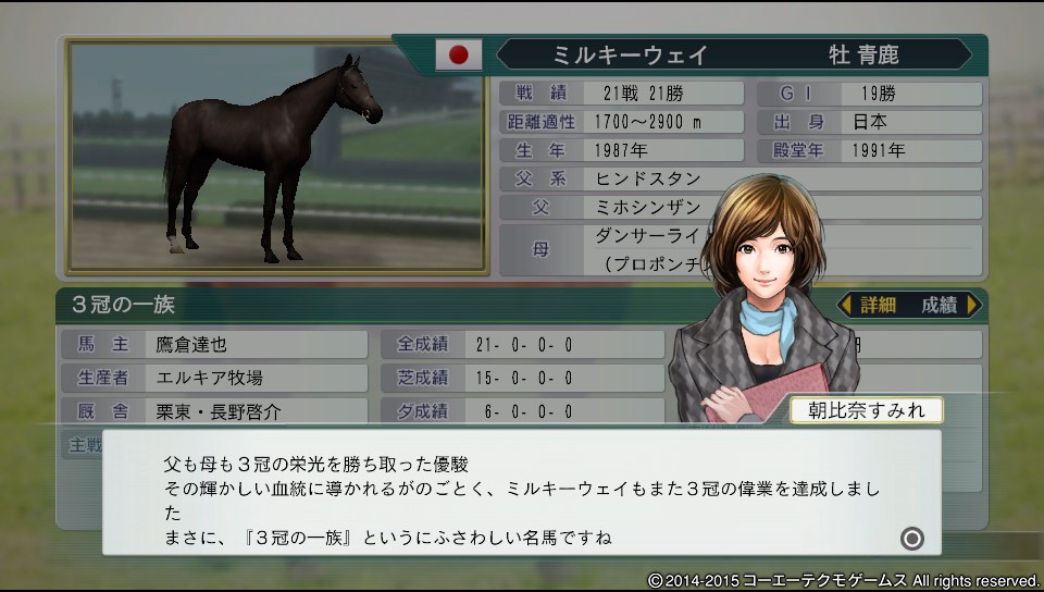 馬場適正ダートだが、距離適性が2000~3000なので柔軟性が成長すると天皇賞春に出走しても意外と勝負になりそう。(難易度ノーマルだし)