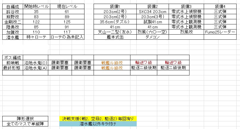 とりあえずE-5掘りに使った編成と装備