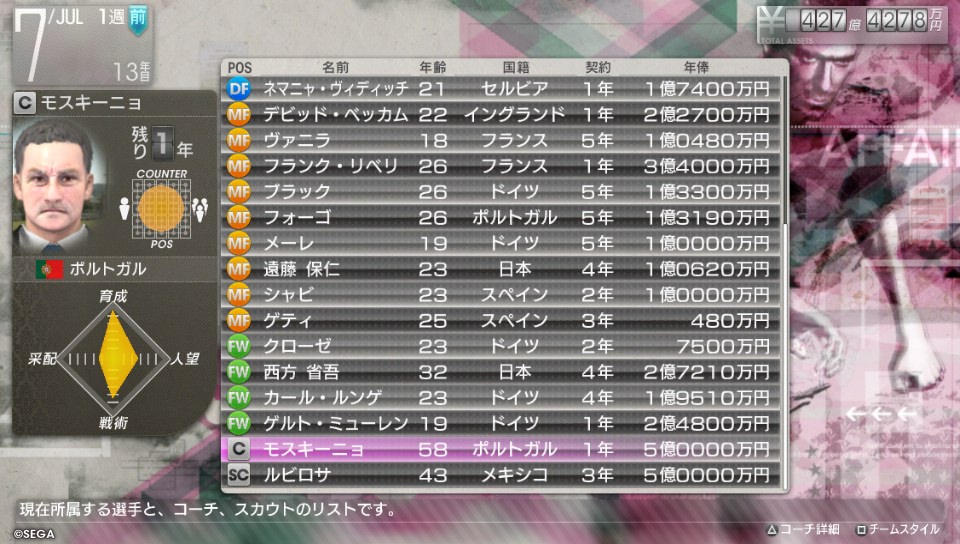7シーズン目はフォーゴ(フィーゴ)が転生して他クラブにいたので所持金120億くらいと、全然無いのに完全移籍交渉開始。