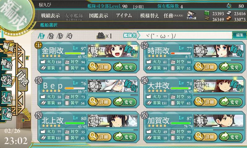 道中の夜戦マスで事故らなければBOSSに行けるかな。